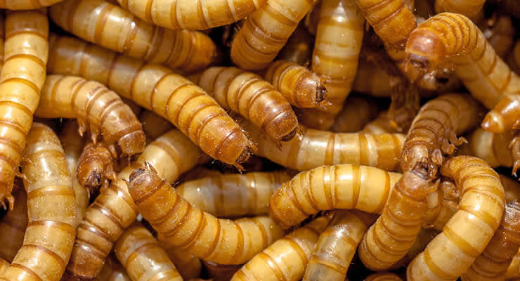 Mealworms are small, worm-like larvae of darkling beetles that are commonly used as food for reptiles, birds, and other insect-eating pets.